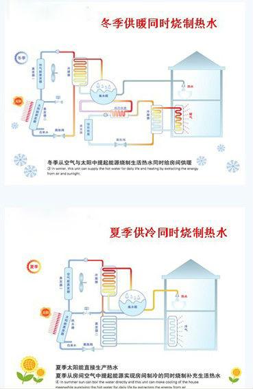 work,otherwise, pump start-up.Super energy-saving and supply hot water in all-weather.
